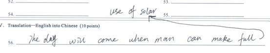 n 用箭头标识写到其他区域的答案无效: