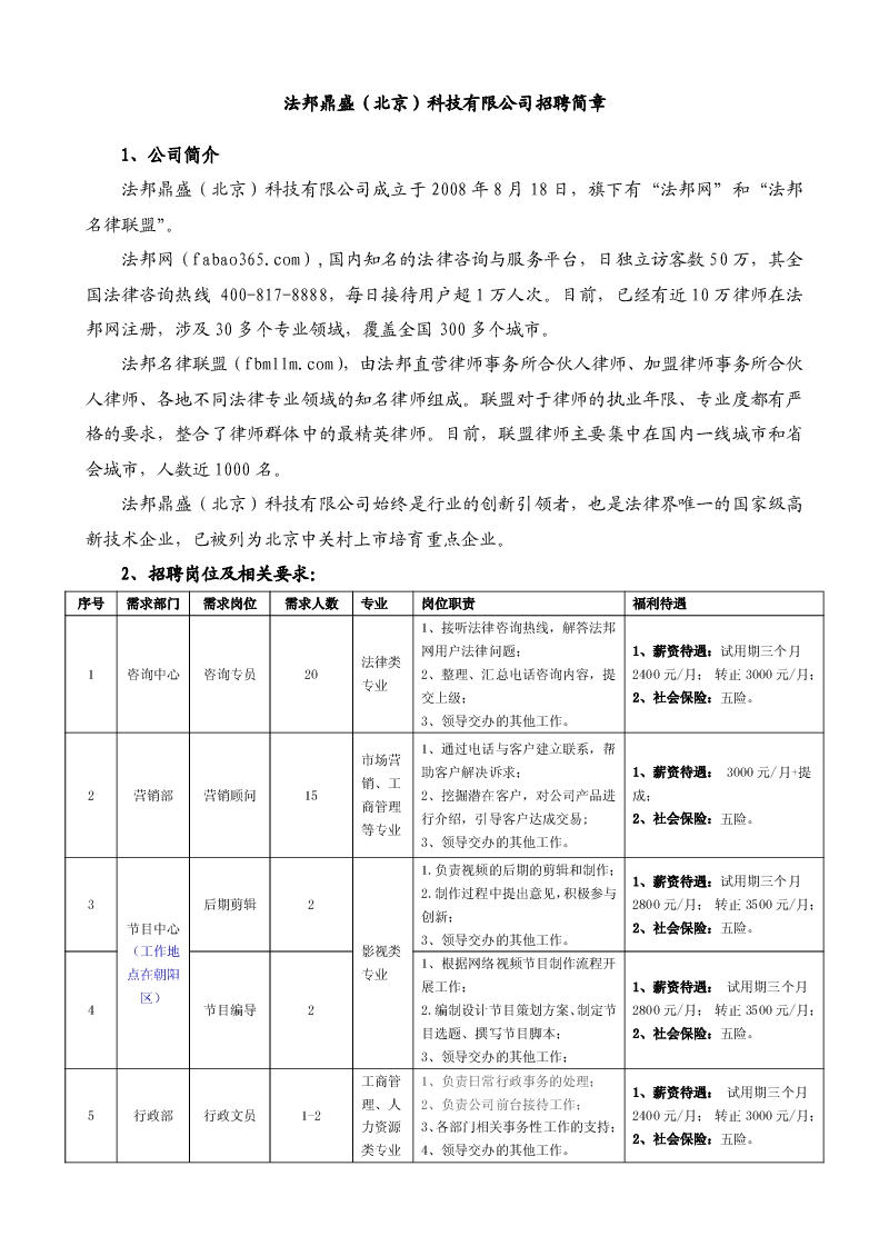 法邦鼎盛科技有限公司招聘信息